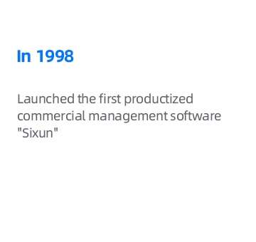 Founded in Shengzhen High-Tech Industrial Park,SIXUN was among China's first national high-tech enterprises and was recognized as a key software company in Shenzhen. Since launching our first commercial management software in 1998, our portfolio now includes renowned brands such as"SIXUN"(思迅), "SIXUN", "Meishijia"(美食家), "eShop", and"Tiandian"(天店), with products and solutions catering toretail, catering, and specialised industry segments.